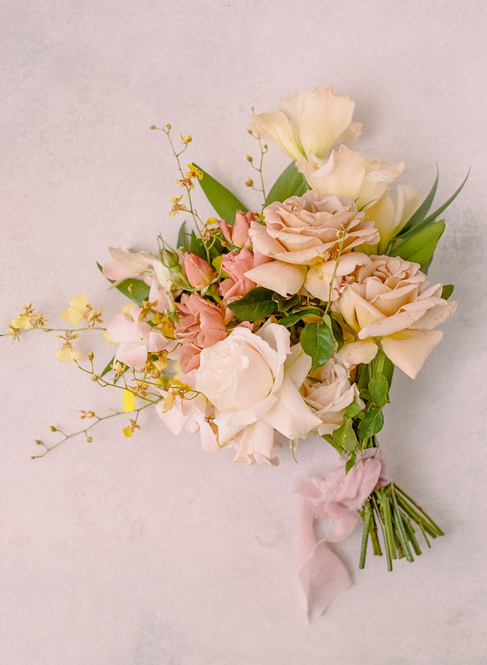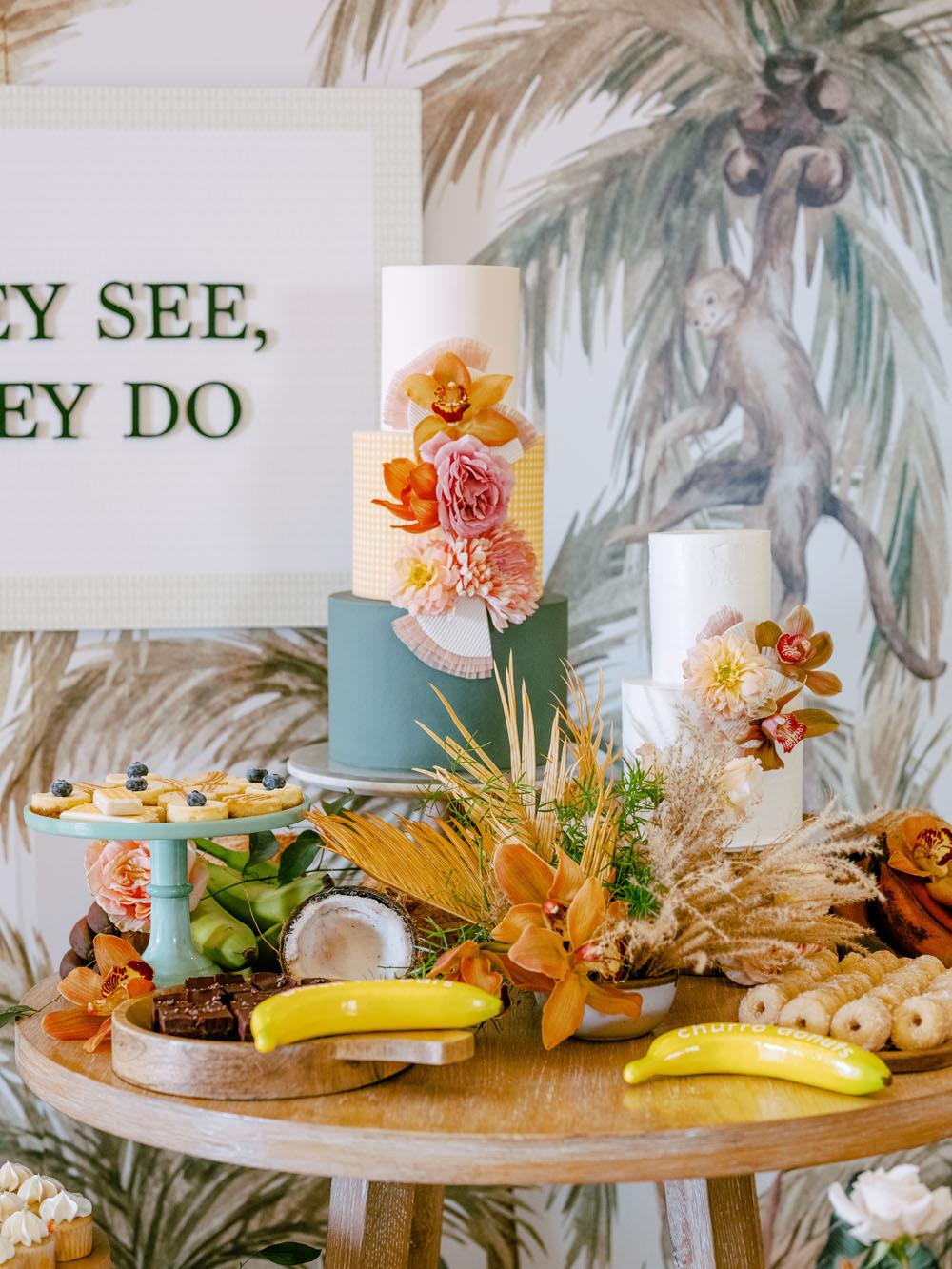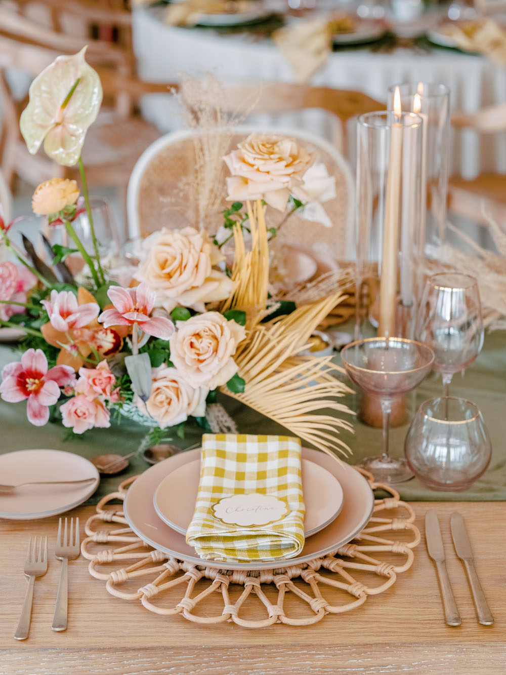 Blush plates and glassware were paired with brighter pinks and yellows for a cheerful palette.