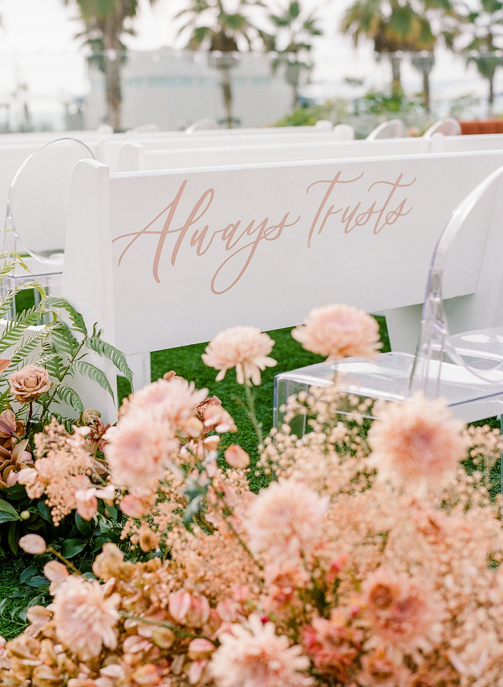 Endless florals, thoughtful details, and the prettiest palette make up Darby and Nathan’s wedding at Hotel Del Coronado, which is right near where they had their first date four years prior. They maintained a long distance relationship all those years, from Virginia to San Diego, so it felt right to go back where it all began. Creative genius Heather at Amorology brought their bright, beachy and slightly boho style all together at the venue’s Vista Terrace for the ceremony, and Ocean Ballroom for the reception. Thanks to Rebecca Yale for sharing these beautiful shots!