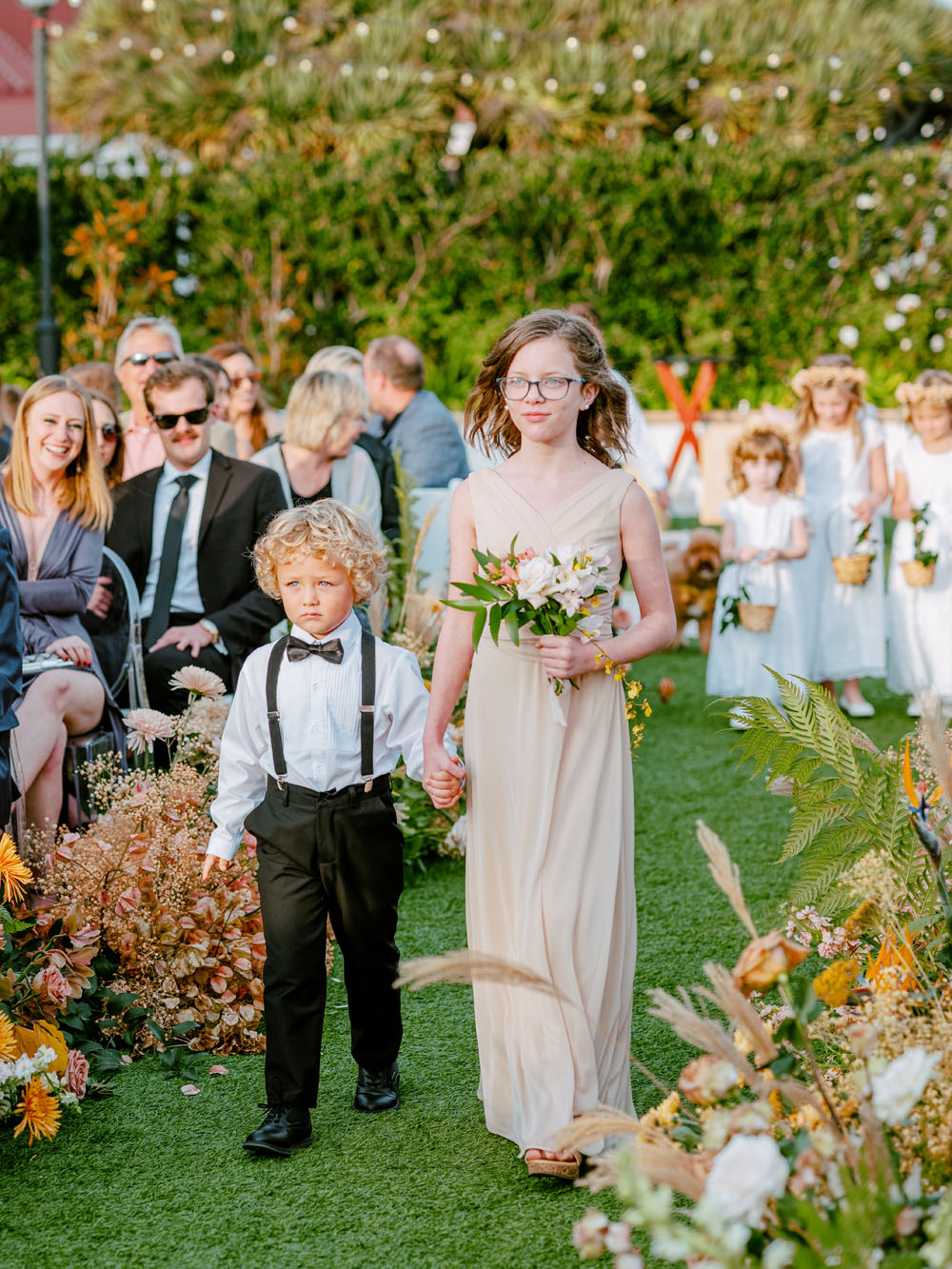 These ceremony florals!!! Native Poppy incorporated the couple’s muted rainbow palette with a gradient of blooms at the altar and lining the aisle.
